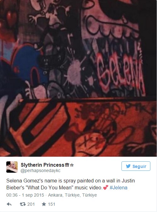 Durante el video de Justin Bieber se puede leer entre los graffittis de un muro el nombre de Selena. Hay que estar con los ojos bien abiertos, porque la palabra “Selena” aparece muy rápido, escrita en un rincón.