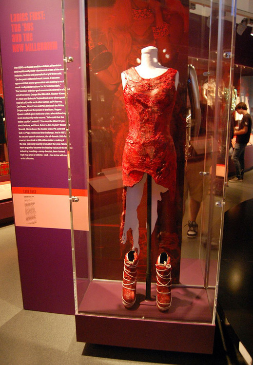 El atuendo creado por el diseñador Franc Fernandez hoy forma parte del Rock and Roll Hall of Fame en Cleveland, Estados Unidos, donde debió someterse a un complicado proceso de conservación para evitar su descomposición.