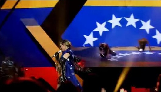 [dropcap]L[/dropcap]a reina de la música pop, Madonna, protagonizó un peculiar momento durante un concierto en Washington DC, en donde mostró la bandera de Venezuela.
