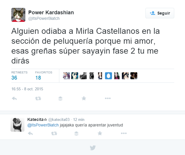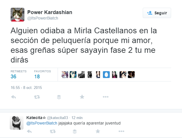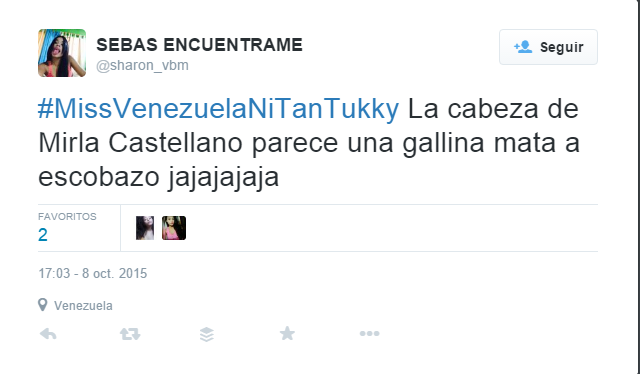 Esta vez pudimos ver a Mirla en una de las noches más importantes de la belleza, el Miss Venezuela 2015, luciendo un look que dio mucho de qué hablar por las redes sociales, ya que los usuarios comentaba su semejanza con personajes de la comiquita ‘Dragon Ball’, el ‘Pajaro Loco’ y con un famoso personaje de Cameron Díaz en la película ‘There´s Something about Marie´.
