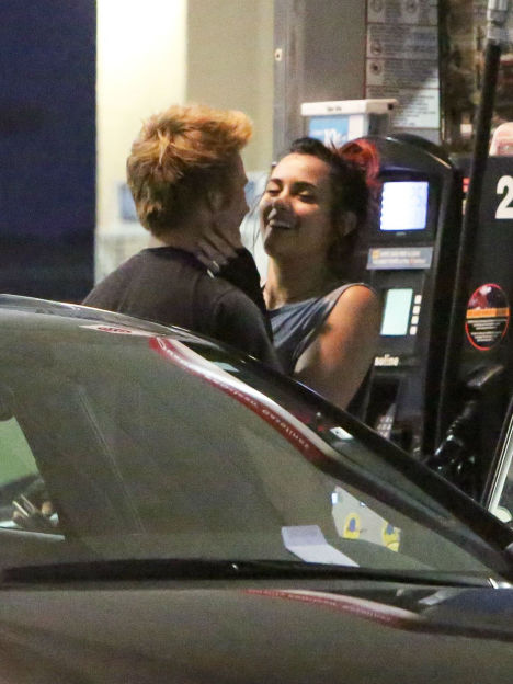 La hija de Michael Jackson fue puras sonrisas mientras su novio durante más de un año la besaba en la mejilla mientras ella esperaba para poner gasolina a su auto.