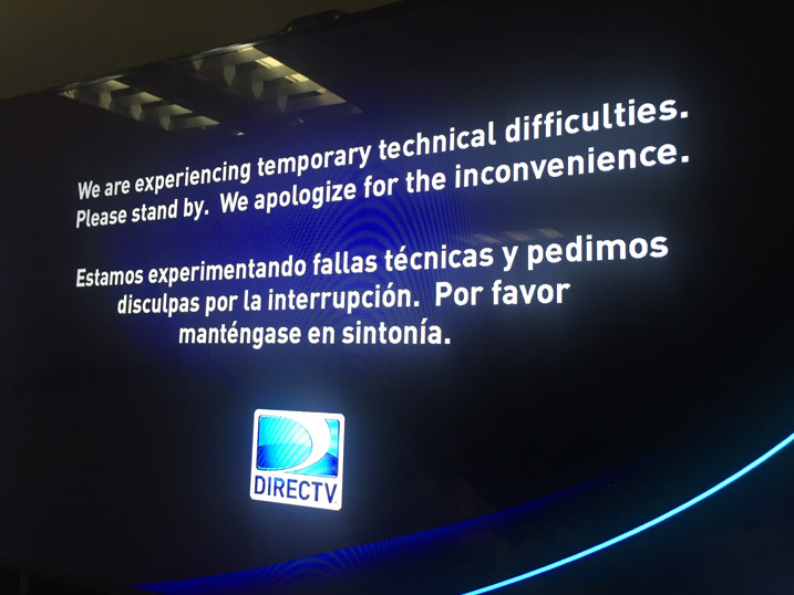 3.- Por cierto, la transmisión de DirecTV no tuvo audio por los primeros… ¡37 minutos! De tanto en tanto, nos deleitaba con esta bella pantalla en pleno concurso