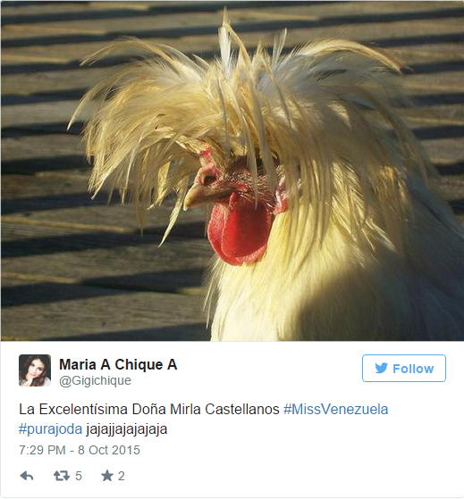 ¿La otra? Nada más y nada menos que LA PRIMERÍSIMA, Mirla Castellanos. Lamentablemente, su peinado lo logró más en las redes sociales: