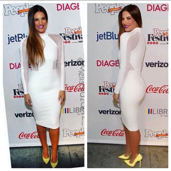 La actriz Gaby Espino, lució para el #FestivalPeople un vestido blanco con transparencias y unos tacones amarillos que hacían un contraste increíble, de Claudia Zuleta.