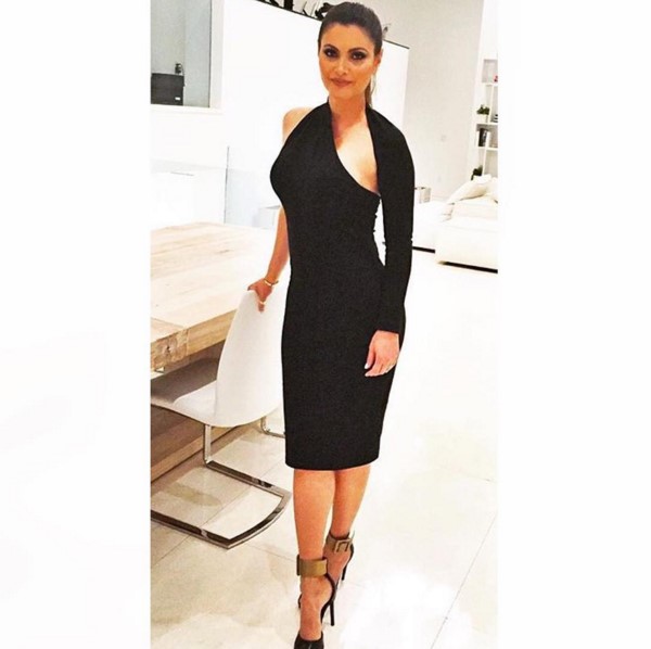 La animadora Chiquinquirá Delgado lució el cabello recogido, acompañado de un vestido negro, con una abertura en los hombros que la hacen lucir muy sexy, y unos tacones negros, de @stylebyrouge.
