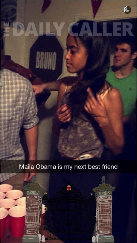 La hija mayor del matrimonio Obama visitó el campus el pasado fin de semana, y mientras ella estaba allí la joven, de 17 años de edad, se las arregló para burlar a sus guardaespaldas y pasarlo bien, como una chica anónima de su edad. El diario conservador Daily Caller ha sido el que ha tenido acceso a una instantánea de Malia tomada durante la fiesta, que ha publicado en su cuenta de Snapchat.