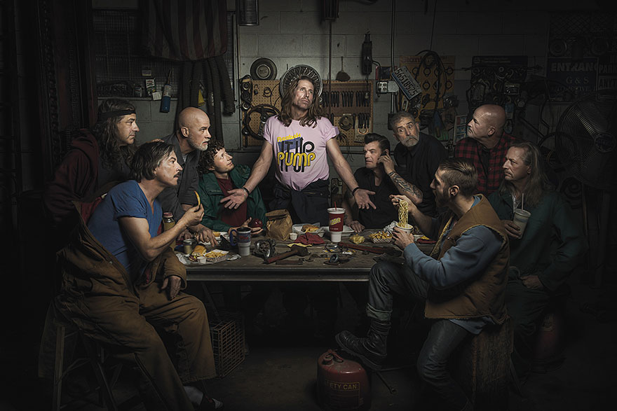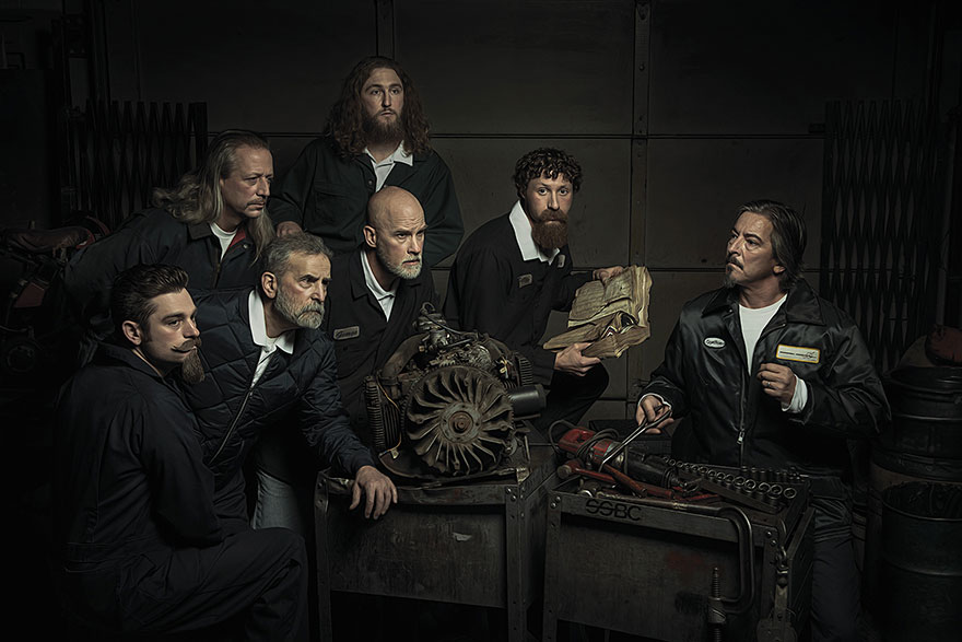 [dropcap]F[/dropcap]reddy Fabris, un fotógrafo de E.E.U.U., siempre quería rendir homenaje con sus fotografías de alguna manera a los maestros del Renacimiento pero no supo cómo hacerlo, hasta que un día se encontró en una tienda de automecánica en Midwest. Este hecho le llevó a una serie de retratos de mecánicos de autos reconstruyendo las famosas pinturas renacentistas.