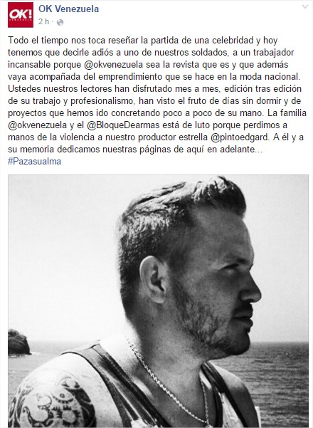 Aunque la página Web del diario Últimas Noticias reseñó que Pinto Marrero era el director de la revista “Ok! Venezuela”, el Bloque Dearmas aclaró que el hoy occiso prestaba servicios para el grupo editorial como productor freelance en esa publicación.