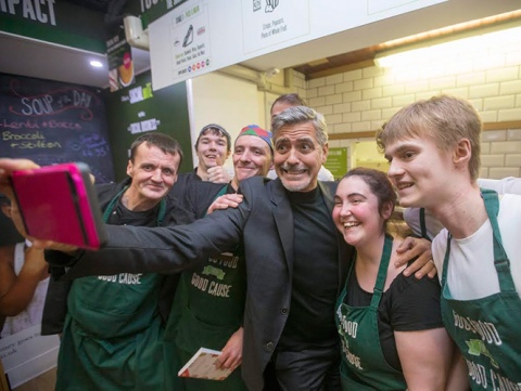 «Todo el personal está tremendamente emocionado por la visita de George. Es una de las personas más famosas del planeta y estamos deseando mostrarle lo que hacemos en Social Bite», afirmó Josh Littlejohn, fundador de la cafetería antes de la visita del célebre actor.