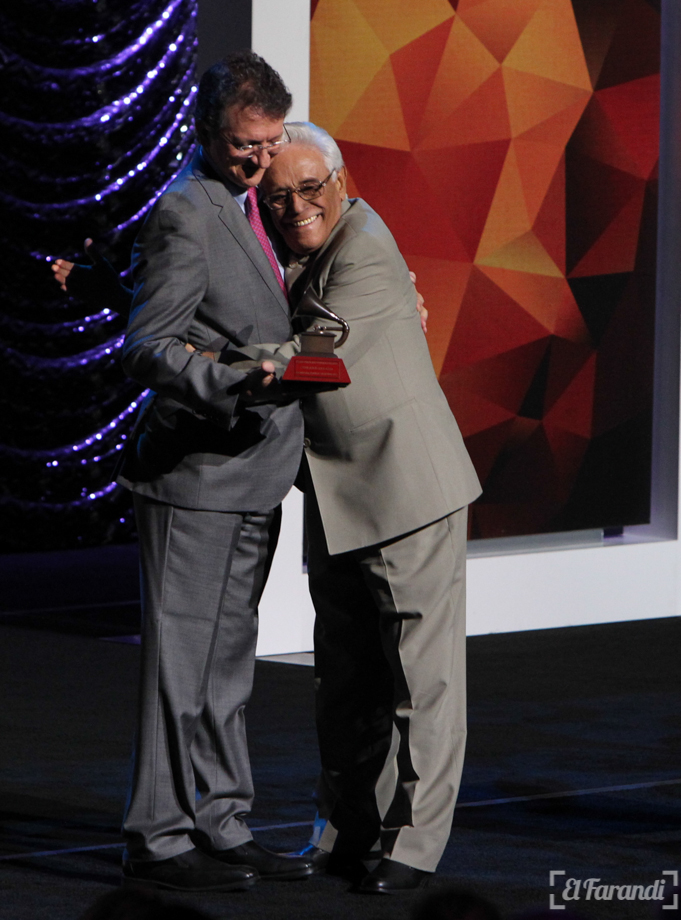 El compositor venezolano Chelique Sarabia recibió, en un evento privado no televisado, el premio del Consejo Directivo de manos del presidente de la institución, Gabriel Abaroa Jr., a quien el autor de Ansiedad (y otras mil canciones más) abrazó con entusiasmo.