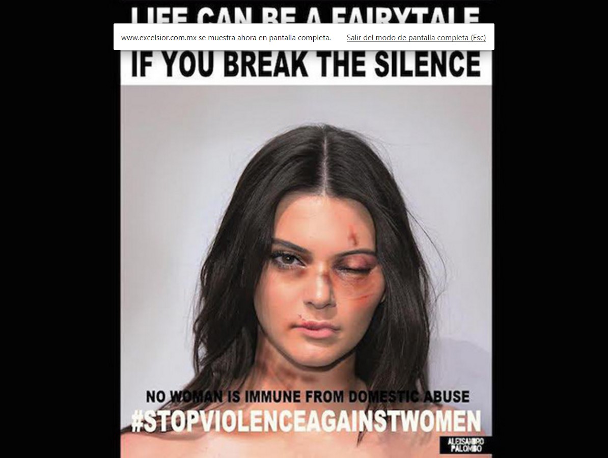 En las fotos de las celebridades, con moretones en el rostro, y bocas o narices rotas, también aparece la frase “ninguna mujer es inmune a la violencia doméstica” y se hace un pedido para frenar la violencia en contra del sexo femenino.
