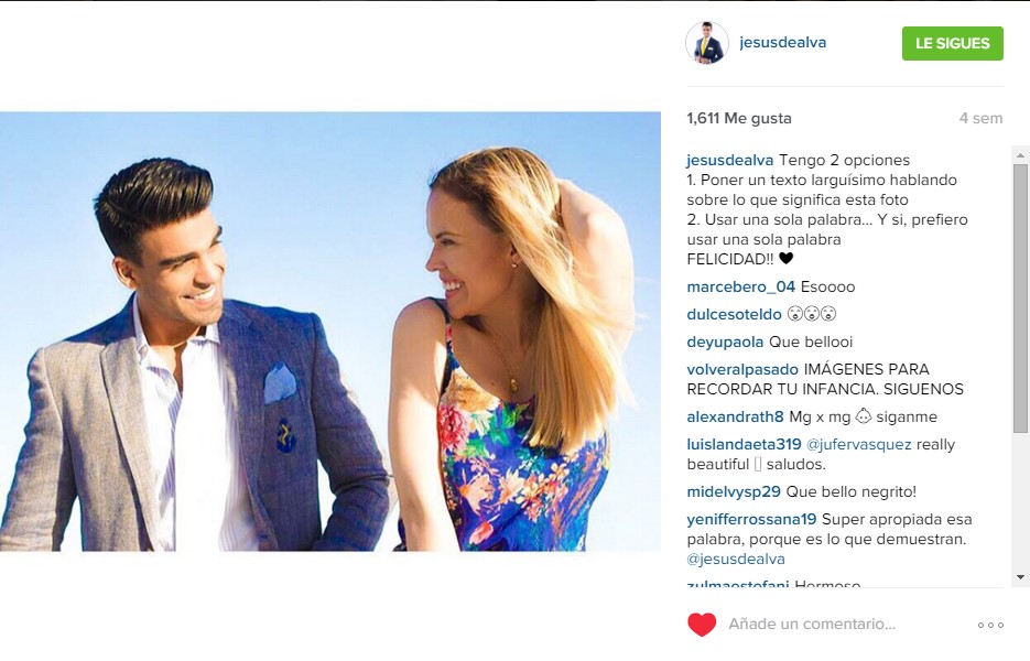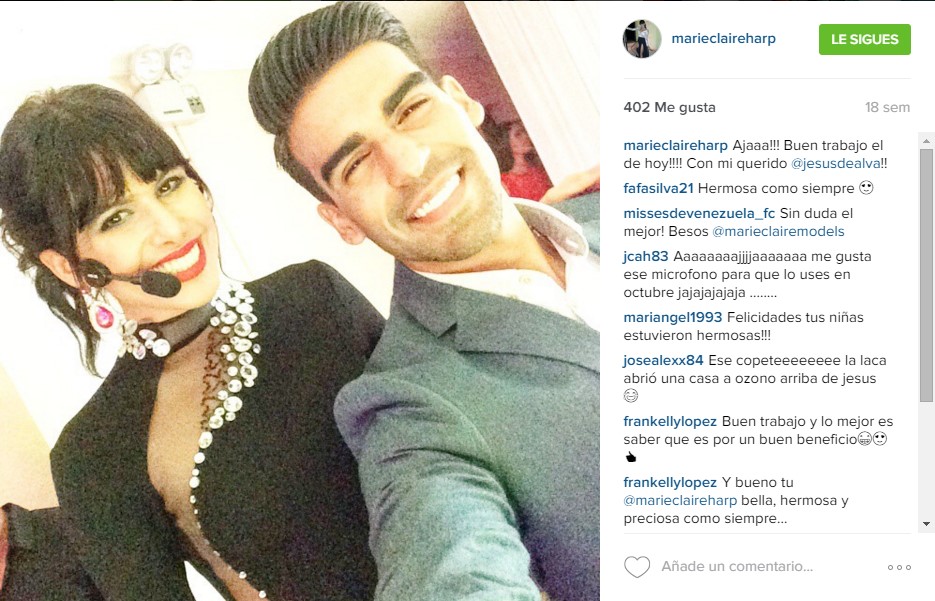 La «manzana de la discordia» en ésta linda parejita resultó ser la ex Miss y animadora de Canal i, Marie Claire Harp, quien luego de compartir en varios eventos junto a Jesus, ha confundido la aparente amistad con algo más. En sus cuentas de Instagram los podemos ver cómo comparten muchas imágenes juntos y los lindos mensajes que se dedican mutuamente. Acá abajo se lo mostramos: