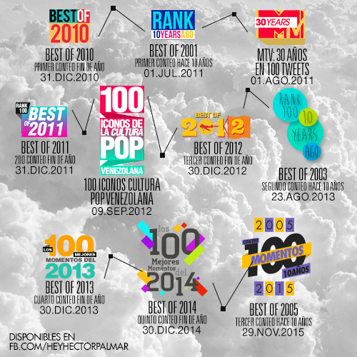 [dropcap]E[/dropcap]l próximo domingo 29 de noviembre de 2015 desde medio día, el periodista de entretenimiento Héctor Palmar, trae de vuelta sus acostumbrados conteos de fin de año, el primero de dos trabajos de investigación que agrupan 100 momentos en cuenta regresiva hasta revelar la posición de honor, formato que lo ha caracterizado desde 2010 cuando realizó la primera entrega.