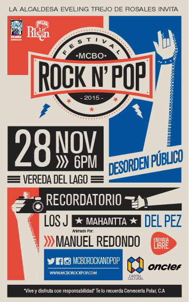 La cita para la cuarta edición del MCBO Rock N’ Pop es el próximo sábado 28 de noviembre de 2015, en la Vereda del Lago, desde las 6PM en adelante, con entrada libre para todas las edades.