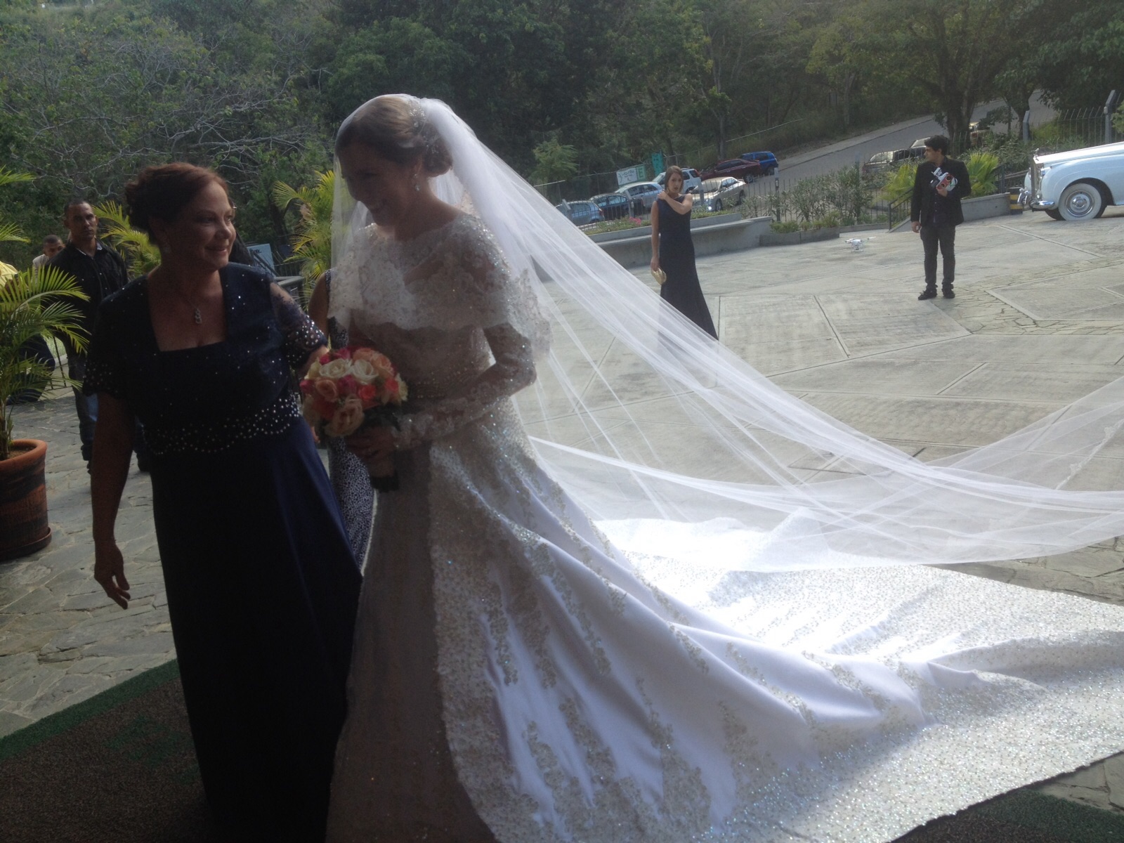 La ceremonia se efectuó en la iglesia Santa Ana, de la Lagunita, ubicado en Caracas. El vestido, el cual la hizo lucir como toda una princesa, fue diseñado por el afamado venezolano Alejandro Fajardo.