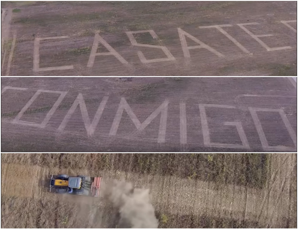 Youtube está lleno de todas las historias inimaginables, y propuestas de matrimonio muy divertidas y creativas. En esta oportunidad, hemos podido dar con lo más original, improvisado, romántico y 100 % venezolano. Aunque desconocemos el nombre el novio, podemos decir que «botó la casa por la ventana» para proponer matrimonio a su pareja, utilizando el nuevo hit musical de Chino y Nacho «Andas en mi Cabeza» y maquinaria pesada para plasmar en la tierra llanera un gigantesco «CÁSATE CONMIGO».