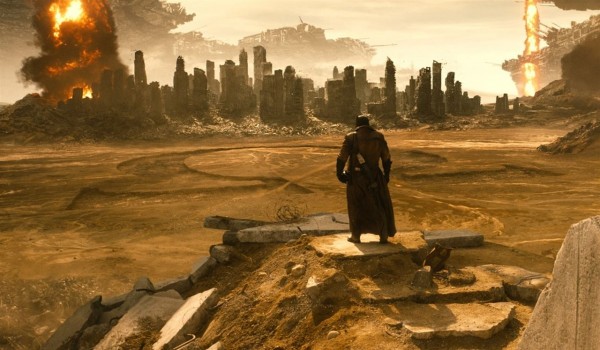 En la escena donde vemos a Bats en una colina mirando hacia el horizonte una ciudad destruida, nos muestran un símbolo gigante grabado en la arena. Se trata del Omega, marca del gran villano Darkseid (Un Thanos en Marvel).