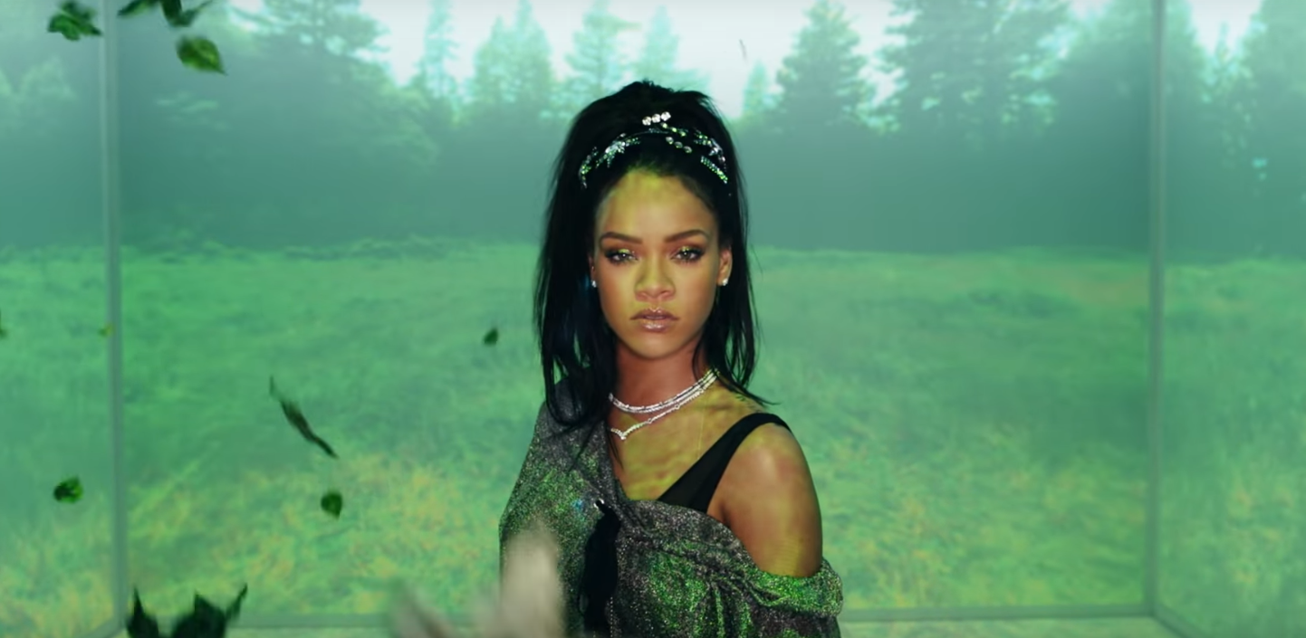 Las imágenes se centran en la cantante oriunda de Barbados, mientras el músico hace breves apariciones dentro del escenario de luces e imágenes donde se ve envuelta la artista.