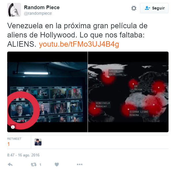En la cuenta de Twitter de Ramdon Piece se dieron a conocer dos imágenes de la película, donde aparece el nombre de Venezuela y el de la ciudad de Maracay.