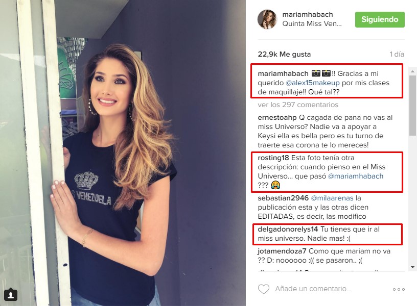 Estos rumores tomaron mucha más fuerza después de que en el perfil de Instagram de Mariam y pies de foto se editara partes donde decía «Rumbo al Miss Universo».