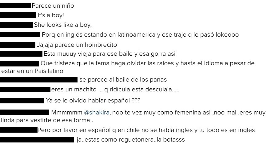 Además de ser criticada por su vestuario y por su coreografía, la cantante colombiana fue cuestionada por hablar en inglés, en un país latinoamericano cuyo idioma es el español.