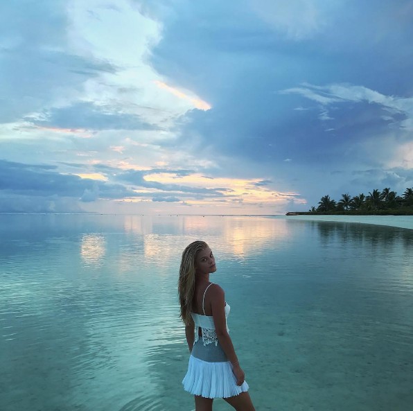 Aunque ambos no fueron fotografiados juntos, el lunes pasado la modelo de 24 años de edad publicó en su cuenta de Instagram una foto de sí misma en la playa. «Azules de lunes», subtituló en la foto.
