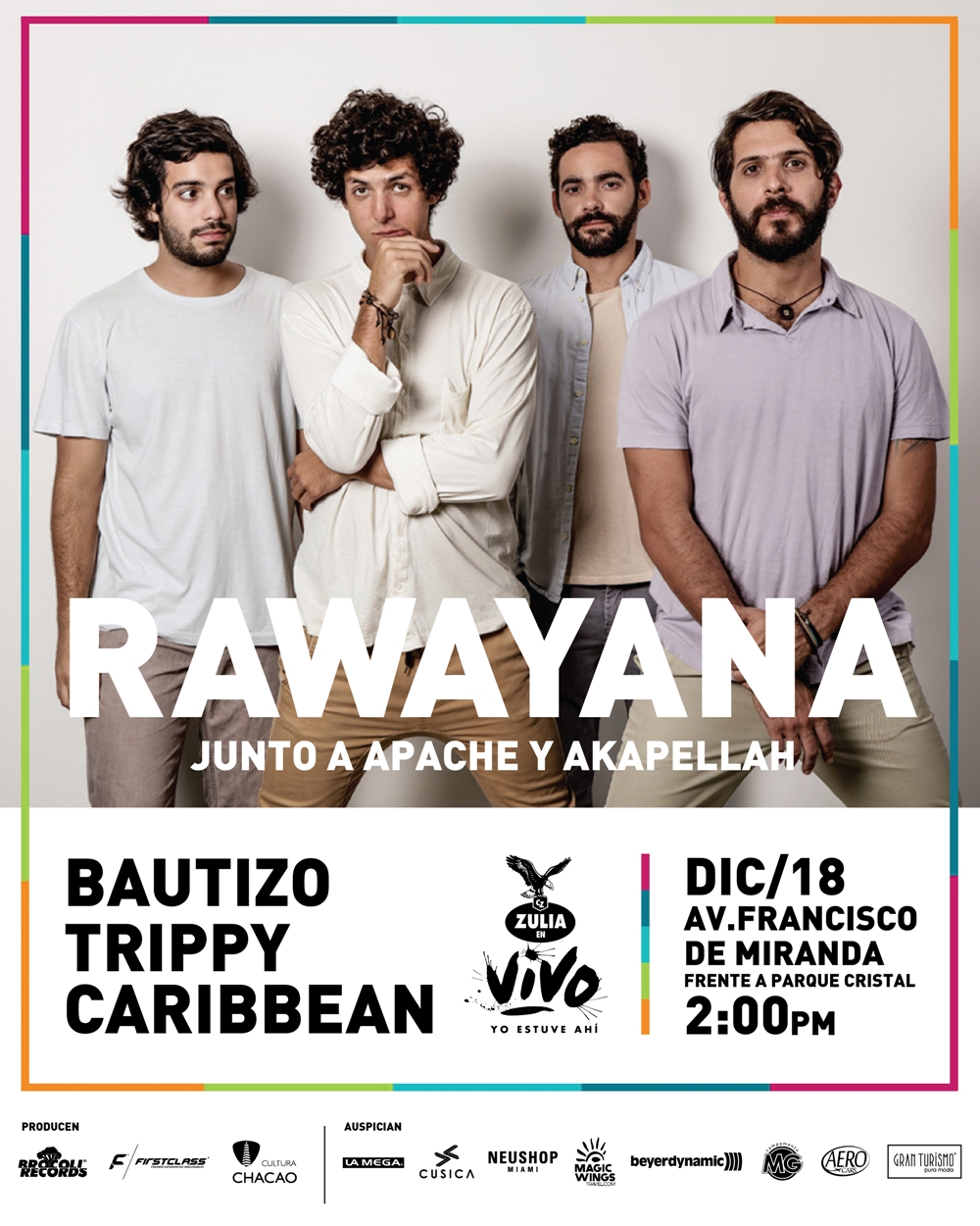 La agrupación venezolana Rawayana presentará su tercera producción discográfica, ‘Trippy Caribbean’, con un concierto que tendrá lugar el domingo 18 de diciembre de 2 a 7:30 p.m., en la avenida Francisco de Miranda a la altura de Parque Cristal, con el apoyo de Cultura Chacao y la participación de Apache y Akapellah como artistas invitados.