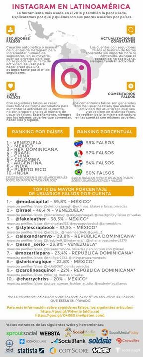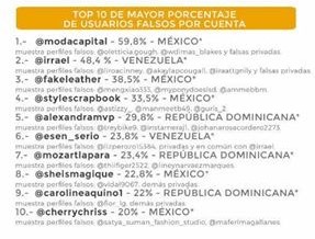 Según este estudio Venezuela está a la cabeza del ranking en cuentas con seguidores falsos, dejando a México y República Dominicana en segundo y tercera lugar.