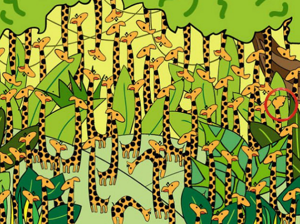 Ahora, aparece a la luz el reto viral más reciente de la web, un desafío de agudeza visual, donde un reptil se esconde entre un montón de jirafas.