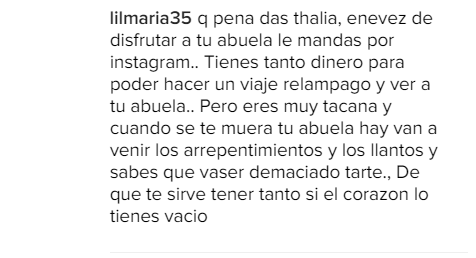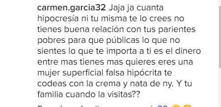 Pese a la felicitación, parece que en esta ocasión no tuvo que ser su hermana Laura quien la acusara de tener «abandonada» a su abuela, pues a pesar de que algunos seguidores compartieron su alegría, otros usuarios criticaron a la actriz. Muchos seguidores la acusaron de hipócrita y de tener abandonada a su abuelita.
