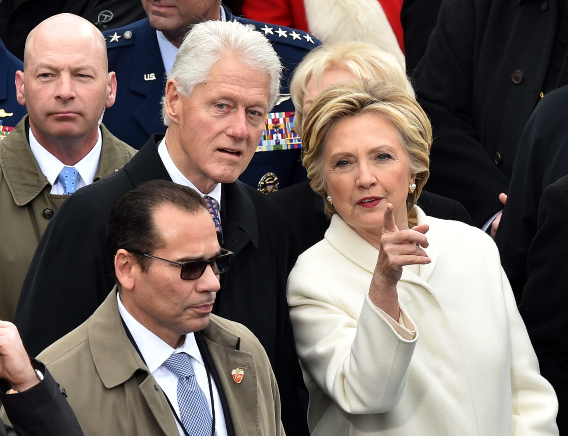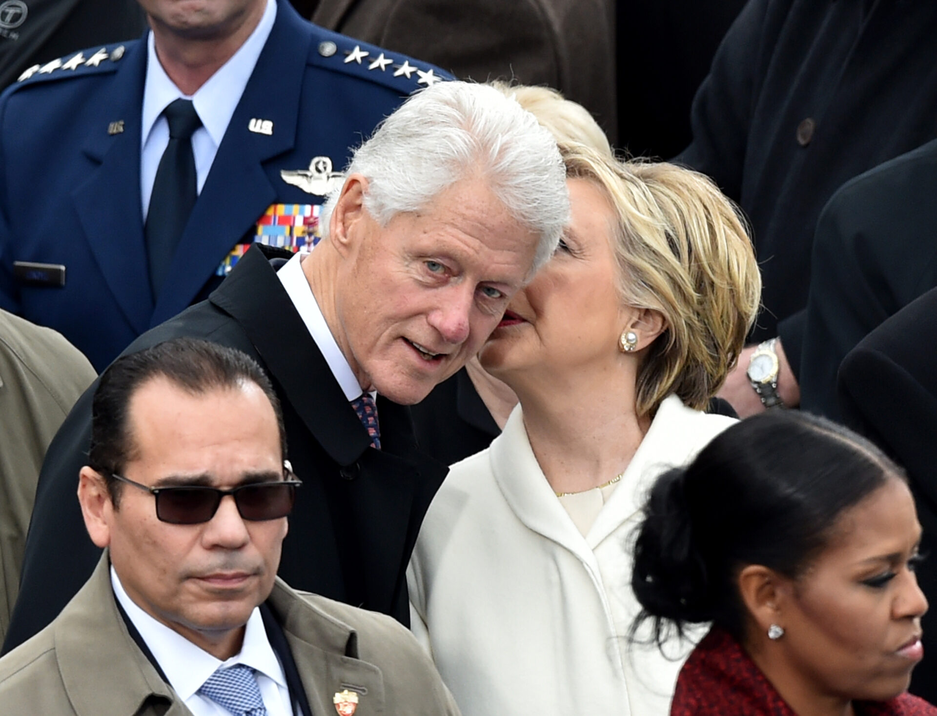 Tal y como se puede ver en un video que se ha comenzado a viralizar en las redes sociales, en un momento del acto de inauguración en Washington el ex presidente Bill Clinton muestra una mirada pícara mientras se distrae con su mirada.