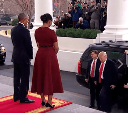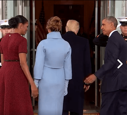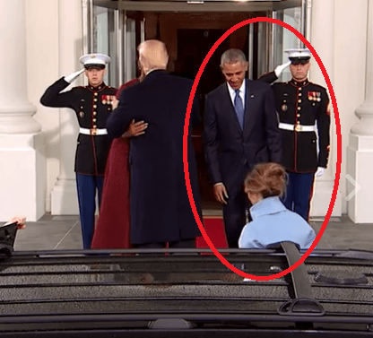 Fue en este instante cuando Obama le demostró a el nuevo presidente del país más poderoso del mundo cómo se trata a una mujer, la tomó del brazo, la acercó para hacerla parte del evento y junto a su mujer la cobijaron en uno de los momentos más incómodos que las dos parejas han vivido.