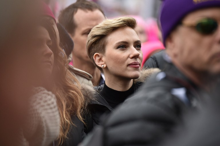 WASHINGTON, DC – JANUARY 21: Scarlett Johansson attends the Women’s March on Washington on January 21, 2017 in Washington, DC. Theo Wargo/Getty Images/AFPWASHINGTON, DC – JANUARY 21: Scarlett Johansson attends the Women’s March on Washington on January 21, 2017 in Washington, DC. Theo Wargo/Getty Images/AFP