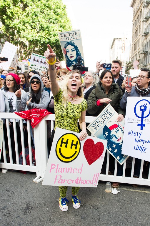LOS ANGELES, CA – JANUARY 21: Singer Miley Cyrus attends the women’s march in Los Angeles on January 21, 2017 in Los Angeles, California. Emma McIntyre/Getty Images/AFPLOS ANGELES, CA – JANUARY 21: Singer Miley Cyrus attends the women’s march in Los Angeles on January 21, 2017 in Los Angeles, California. Emma McIntyre/Getty Images/AFP