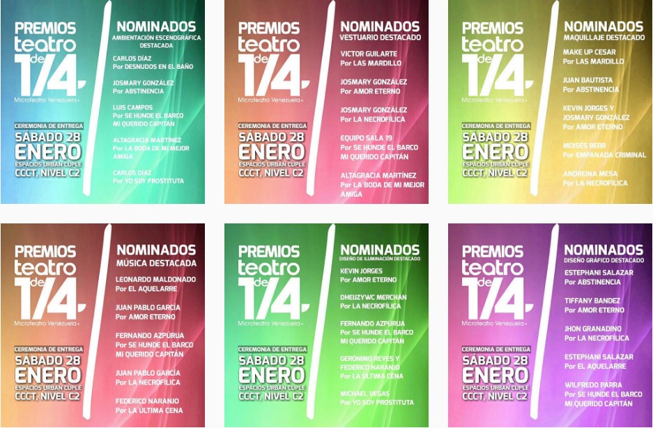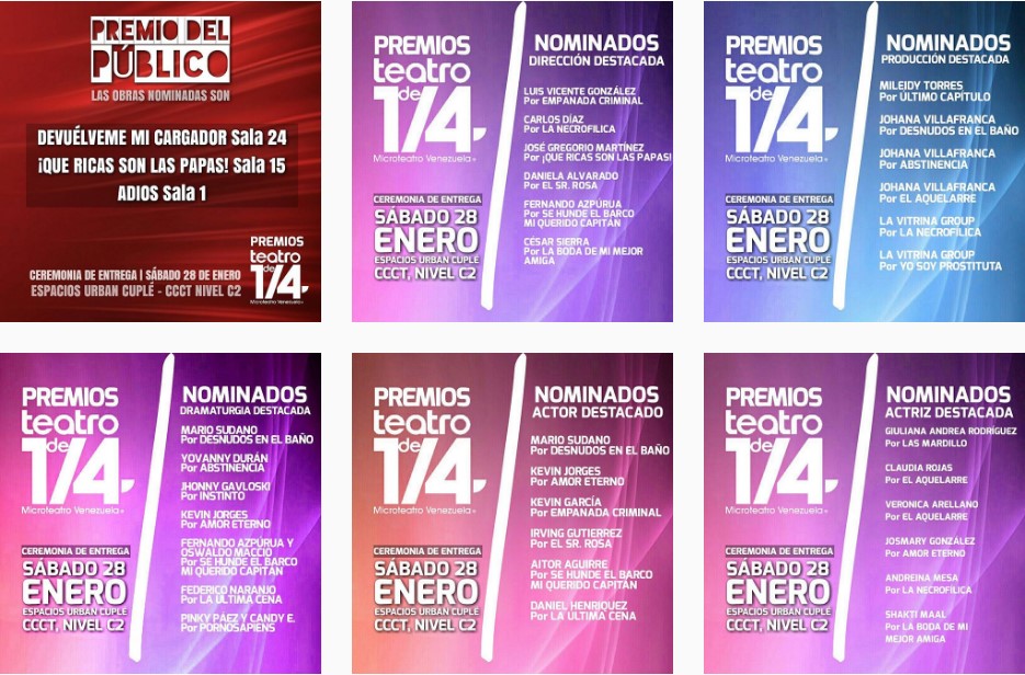 Todas las nominaciones de esta décima edición de Microteatro Venezuela pueden consultarse a través de la cuenta de Instagram y twitter: @microteatrovzla y por el Facebook: Microteatro Venezuela.