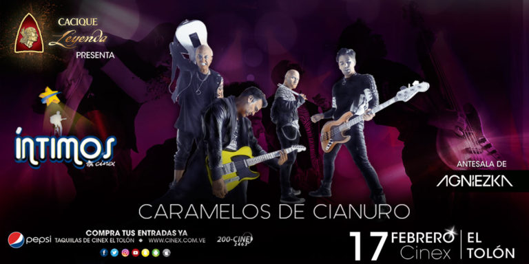 En el mes del amor y la amistad no regales chocolates, regala Caramelos de Cianuro, y es que Íntimos Cinex se pone rockero para recibir este 17 de febrero a Asier Cazalis, Miguelangel “El enano” González, Pavel “El Ruso” Tello y Darío Adames en la Sala 4 de Cinex Tolón, y todas las fanáticas que no han dejado de gritar “Asier, Asier atrapa mi brasier” podrán adquirir sus entradas desde este viernes 27 de enero.