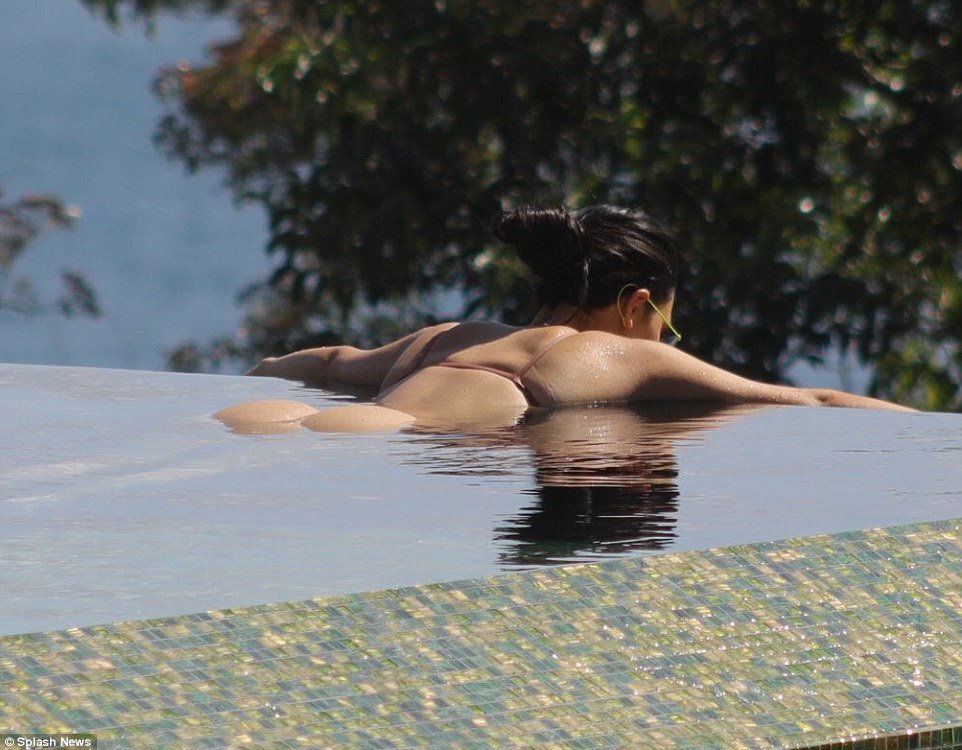 Y como siempre los paparazzi estaban muy pendientes de capturar el cuerpo de la más famosa de las Kardashian, Kim, y pudimos ver su sensual figura y su «gran retaguardia» en un pequeño bikini color piel.