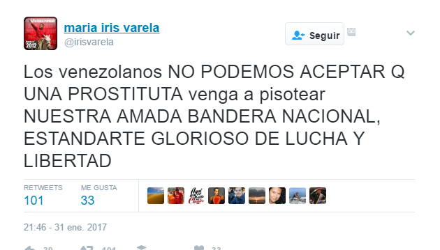 La ministra venezolana Iris Varela arremetió contra la actriz venezolana Alicia Machado, tildándola de «prostituta».