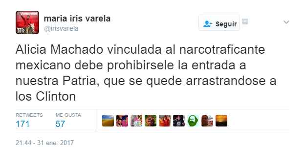 Las fuertes acusaciones de Verela las hizo a través de su cuenta de twitter en donde acusó a la ex reina de belleza de estar vinculada con narcotraficantes.