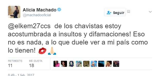 La respuesta de Alicia no se hizo esperar y fue a través de un usuario que la actriz se enteró quien era la ministra.