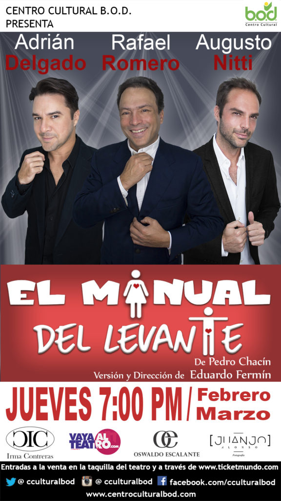 “El Manual del Levante” vuelve al Centro Cultural BOD junto a Adrián Delgado, Augusto Nitti y Rafael Romero, quien se suma al equipo en esta 2da temporada que comenzará este 09 de febrero con una función especial a beneficio de Roberto Lamarca, quien actualmente atraviesa un momento difícil de salud. Lamarca, primer actor que en el año 2000 estrenó el monólogo del mismo texto, en 2016 planteó retomar este proyecto para hacer un espectáculo de tres actores en su primera temporada.