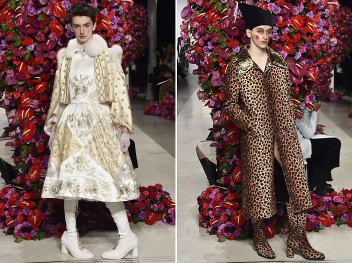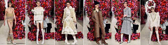 En los más de 35 modelos que presentó dominaron los volantes con volumen, los tejidos metalizados, los estampados animales, y materiales tan distintos como el terciopelo, el látex o el satén, así como colores fuertes, como el rosa fucsia, el morado y el rojo.