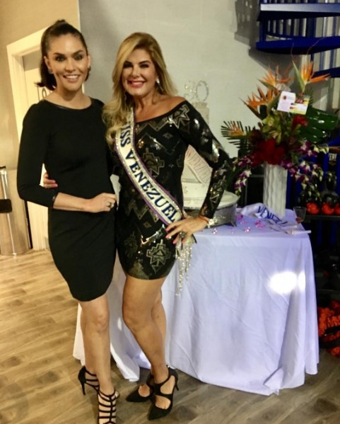 Con un vestido negro, corto, brillante y su banda que la hace acreedora del título de la mujer más bella del país, Calero festejó junto a su familia este gran triunfo. Además estuvo presente la Miss Venezuela 1997, Veruzhka Ramírez.