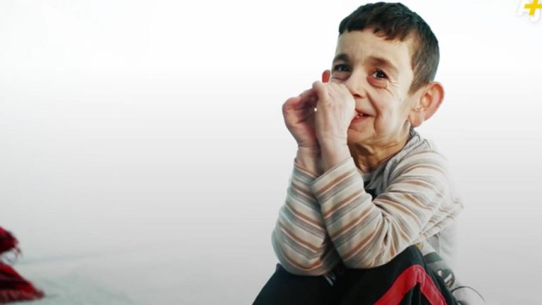 Mohammed Abdelmajeed de 7 años de edad, es un niño sirio que nació con progeria, una rara enfermedad que lo hace lucir como un anciano, a su corta edad.