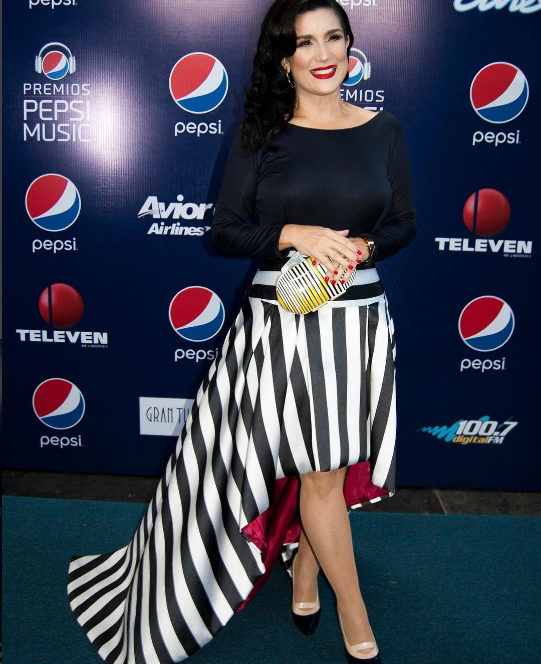 Karina hizo su regreso triunfal, y la vimos con este conjunto en blanco y negro muy favorecedor. Su estilismo y maquillaje impecables.