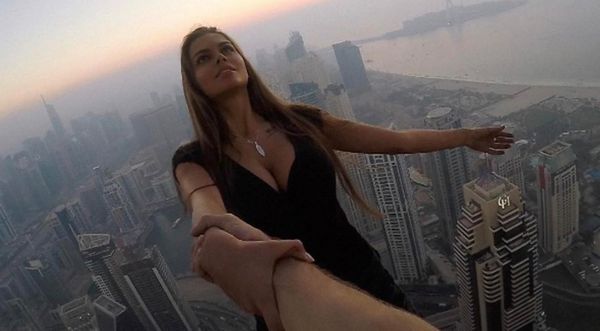 La modelo rusa Viktoria Odintsova, de 23 años se animó a una producción de fotos muy arriesgada, mientras colgaba, sin protección, de 300 metros de altura.