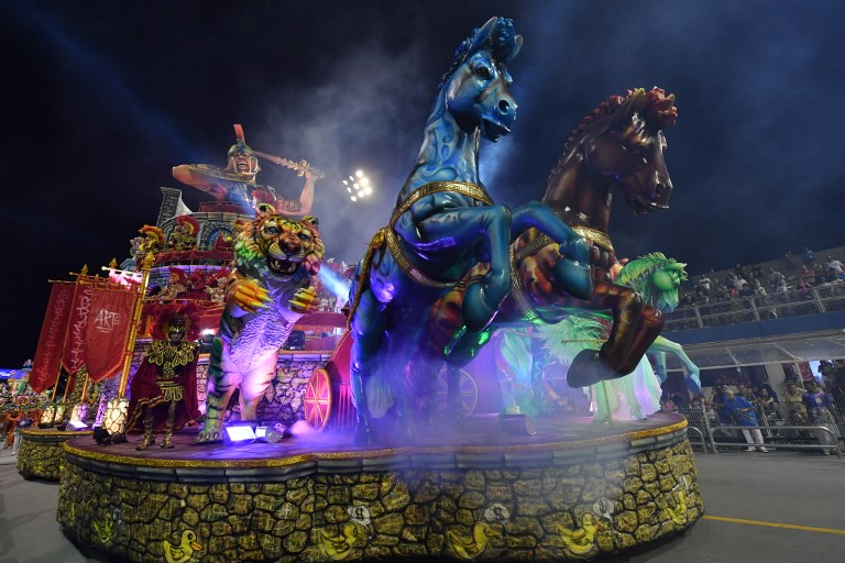 Revelers of the Mocidade Alegre samba school perform during the first night of carnival parade at the Sambadrome in Sao Paulo, Brazil early on February 25, 2017. / AFP PHOTO / NELSON ALMEIDARevelers of the Aguia de Ouro samba school perform during the first night of carnival parade at the Sambadrome in Sao Paulo, Brazil early on February 25, 2017. / AFP PHOTO / NELSON ALMEIDARevelers of the Unidos de Vila Maria samba school perform during the first night of carnival parade at the Sambadrome in Sao Paulo, Brazil early on February 25, 2017. / AFP PHOTO / NELSON ALMEIDAA float of the Academicos do Tucuruvi samba school parades during the first night of carnival parade at the Sambadrome in Sao Paulo, Brazil early on February 25, 2017. / AFP PHOTO / NELSON ALMEIDARevelers of the Academicos do Tucuruvi samba school perform during the first night of carnival parade at the Sambadrome in Sao Paulo, Brazil early on February 25, 2017. / AFP PHOTO / NELSON ALMEIDA