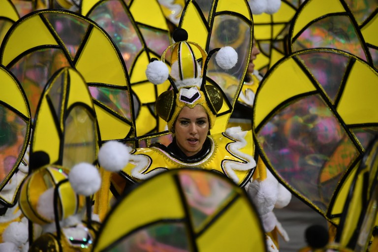 A dancer of the Aguia de Ouro samba school performs during the first night of carnival parade at the Sambadrome in Sao Paulo, Brazil early on February 25, 2017. / AFP PHOTO / NELSON ALMEIDAA dancer of the Aguia de Ouro samba school performs during the first night of carnival parade at the Sambadrome in Sao Paulo, Brazil early on February 25, 2017. / AFP PHOTO / NELSON ALMEIDARevelers of the Aguia de Ouro samba school perform during the first night of carnival parade at the Sambadrome in Sao Paulo, Brazil early on February 25, 2017. / AFP PHOTO / NELSON ALMEIDAA dancer of the Unidos de Vila Maria samba school performs during the first night of carnival parade at the Sambadrome in Sao Paulo, Brazil early on February 25, 2017. / AFP PHOTO / NELSON ALMEIDAA dancer of the Unidos de Vila Maria samba school performs during the first night of carnival parade at the Sambadrome in Sao Paulo, Brazil early on February 25, 2017. / AFP PHOTO / NELSON ALMEIDA