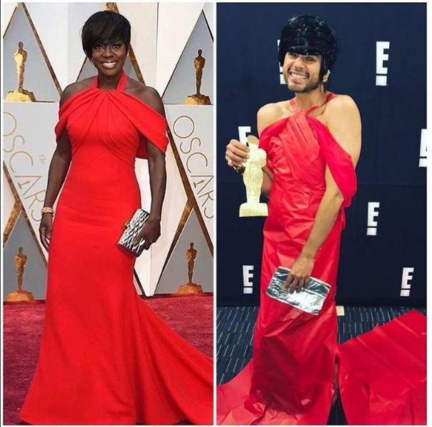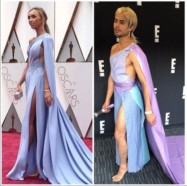 El actor venezolano Pastor Oviedo imitó los trajes de las celebridades que asistieron a la alfombra roja de los premios Oscar, al igual que en la gala de los Grammy.