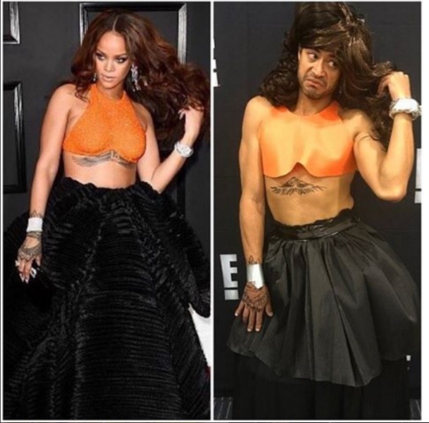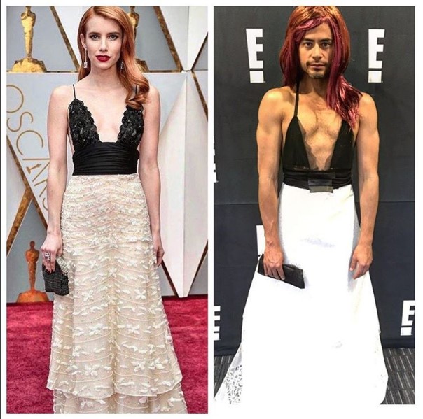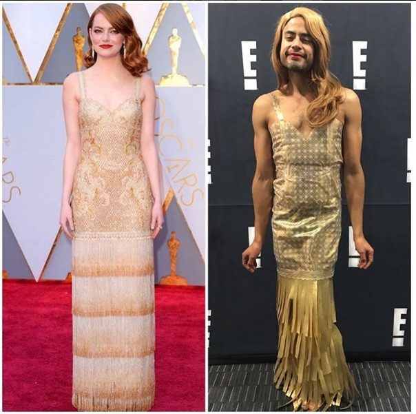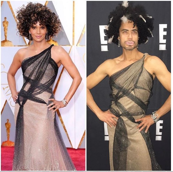 A través de su cuenta personal en Instagram, Oviedo publicó unos collages donde aparecen las actrices Emma Stone, Viola Davis, Giuliana Rancic, Emma Roberts y Halle Berry, y al lado una foto de él vestido muy parecido a las celebs.